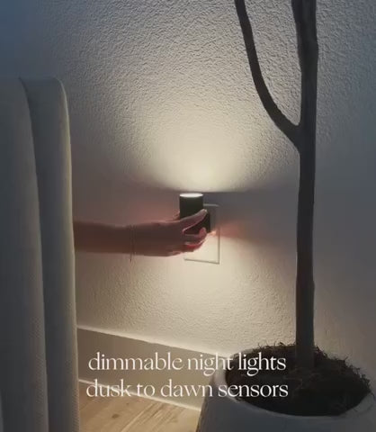 I am in LOVE with these nightlights! I have purchased 6 in total. I love the ‘spotlight’ look and how they nicely light up the hallway, bathroom, and kitchen for when anyone needs to get up at night. I love the dimming feature. I wish I could make them a bit warmer, but love them nonetheless! I love how they automatically turn on when it gets dark/dim. My sons all love them too. The price is amazing! The size doesn’t prevent you from plugging in something else into the outlet which is so great! Highly recommend!